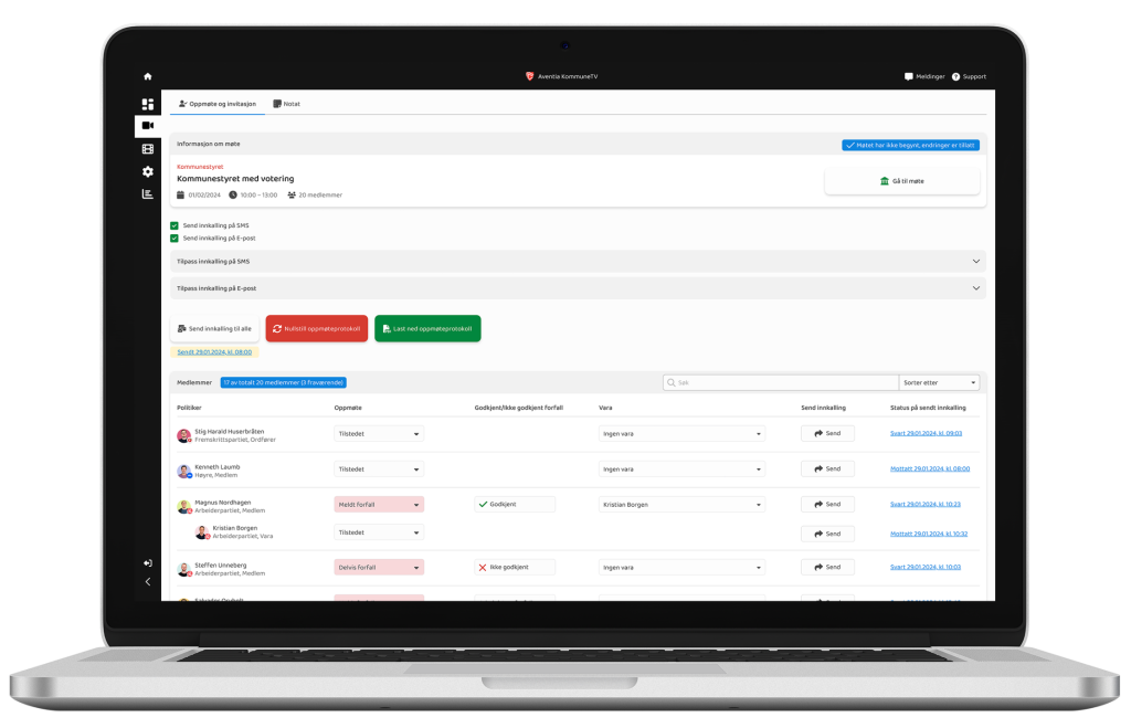 Rask og pålitelig kommunikasjon med varamedlemmer.