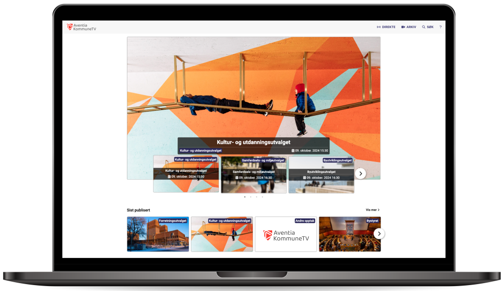 Med vår Live Stream-løsning kan kommunens innbyggere følge møtene direkte fra hvor som helst, enten fra hjemmet, arbeidsplassen eller på farten. I tillegg gjør vi det enkelt å se møtene i opptak når det passer dem, slik at ingen viktige beslutninger går tapt. Aventia KommuneTV er utviklet med solid erfaring fra strømming av politiske møter, og løsningen er nøye skreddersydd for å møte kommunens behov for åpenhet, tilgjengelighet og dokumentasjon. Med brukervennlig teknologi, høy sikkerhet og tett integrasjon mot sak- og møtebehandling, tilbyr vi en komplett og pålitelig plattform som støtter kommunens demokratiske arbeid.